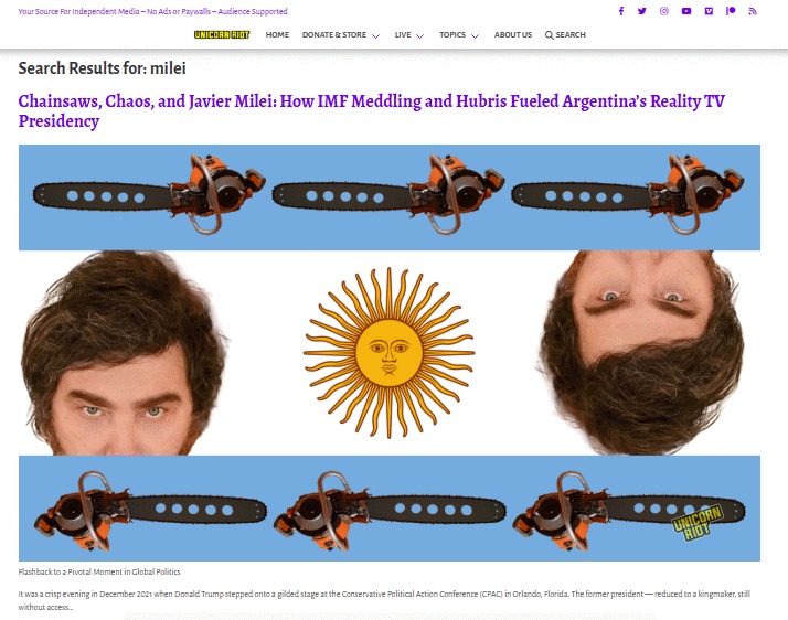 Título de la nota: “Motosierras, caos y Javier Milei: Cómo la intromisión del FMI y la arrogancia impulsaron la presidencia argentina de la telerrealidad”