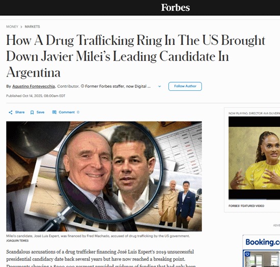 Título de la nota: “Cómo una red de narcotráfico en EE. UU. derribó al candidato principal de Javier Milei en Argentina”